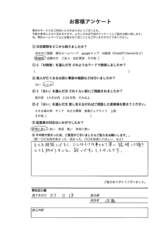 どちらも御家族様に寄り添えた提案となってなによりです。ご協力ありがとうございました。